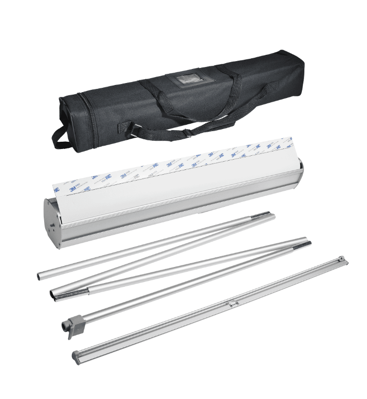Complete your trade show booth with a 33.5″ Retractable Banner. Portable, sleek, and great for quick set-up, the Retractable Banner RE33.5 is a cost-effective way to attract interested buyers. They’re easy to use and come with a carrying case for easy transport.